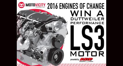 Motovicity Distribution, an automotive performance aftermarket distributor, is announcing the launch of its 2016 Engines of Change B2B promotion, which will give away a GM LS3 engine custom built by Duttweiler Performance and presented by ARP Fasteners.
