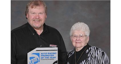 (Image of Steve Beitler, left, and award presenter Jody Deery, right, courtesy of Racing Promotion Monthly.)