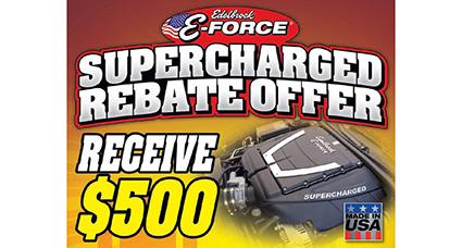Edelbrock will send consumers $500 cash-back with the proof of purchase on select E-Force Supercharger systems from now until June 3, 2013.