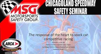 Officials from the Automobile Racing Club of America (ARCA) announced that the Motorsports Safety Group (MSG) would be hosting the fourth in a series of scheduled safety seminars on Thursday, June 28, at Chicagoland Speedway.
