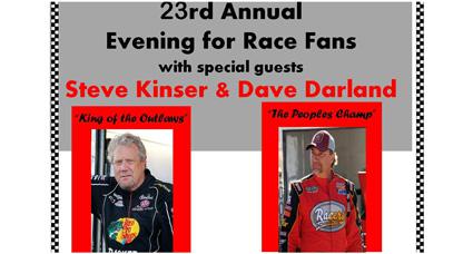 Steve Kinser and Dave Darland will be the featured guests during 23rd annual Evening for Race Fans, slated for Dec. 2 at Romer’s Catering in St. Henry, Ohio.