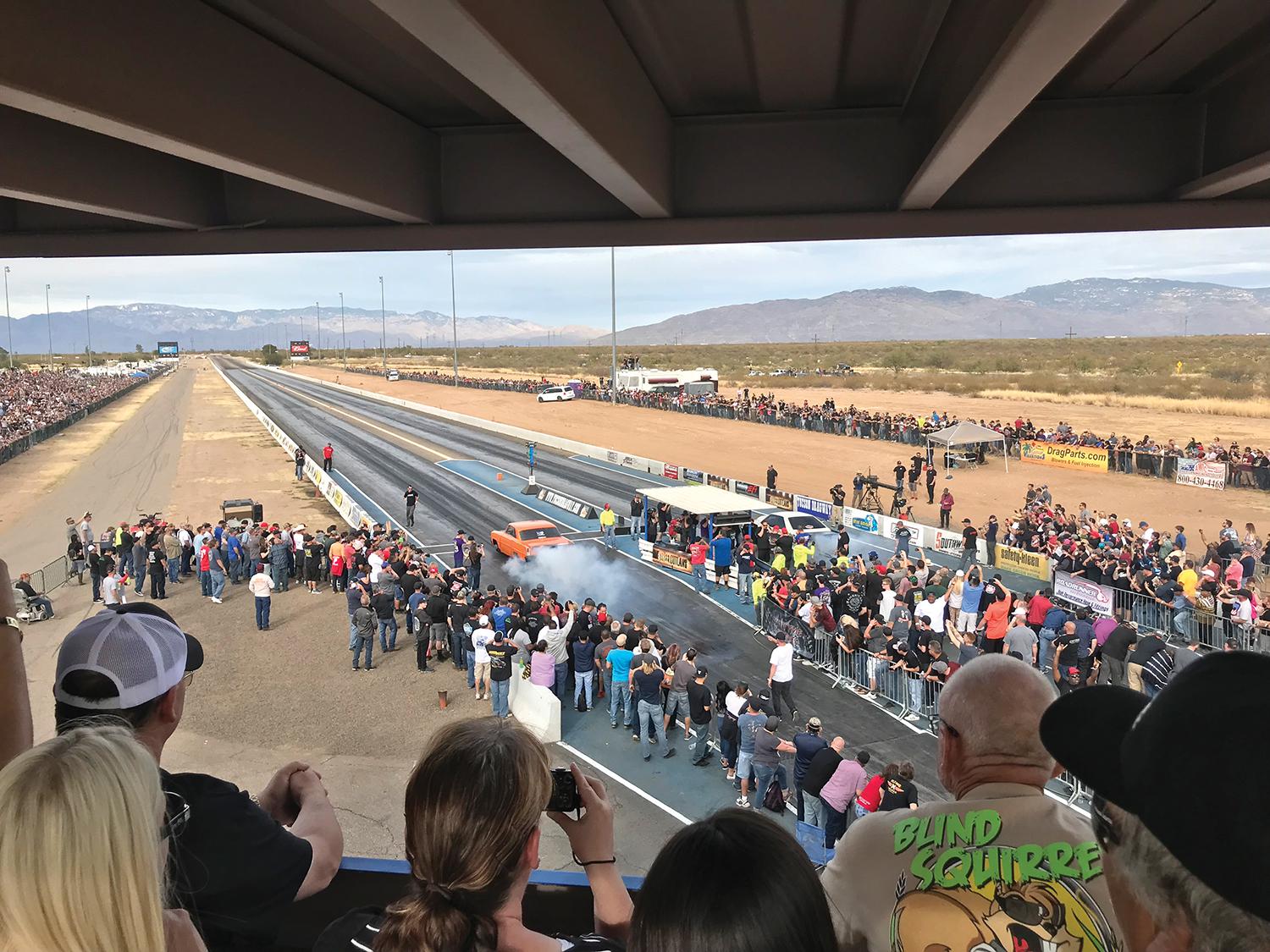 The team at Arizona’s Tucson Dragway, at left, keeps close tabs on the number of classes it runs. A simplified structure and working relationships with its racers gives them the opportunity to run competitively with minimal hassle and expense, according to Matt DeYoung.