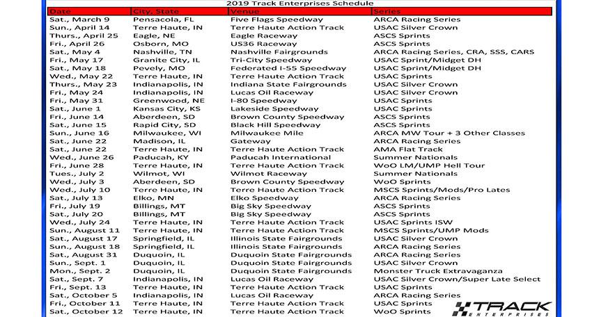 Motorsports promotion company Track Enterprises, based in Macon, Illinois, is expanding to a record number of events in 2019, covering over 20 venues in 13 states across the nation.