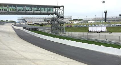 • Seventy-eight feet of standard SAFER barriers were added to the existing inside backstretch wall and 401 feet of SAFER barriers were included in front of a new, steel post inside wall on a newly placed stretch of concrete in front of the grassy area at the entrance to Turn 3. The Monster Bridge near the Turn 3 entrance sits above the new construction area.