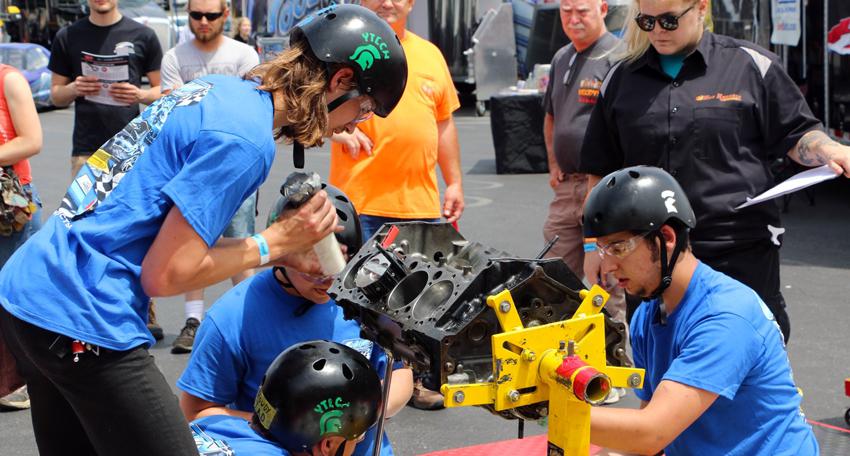 To qualify, teams must finish disassembling and reassembling a small-block Chevrolet engine in less than 33 minutes (including penalties).