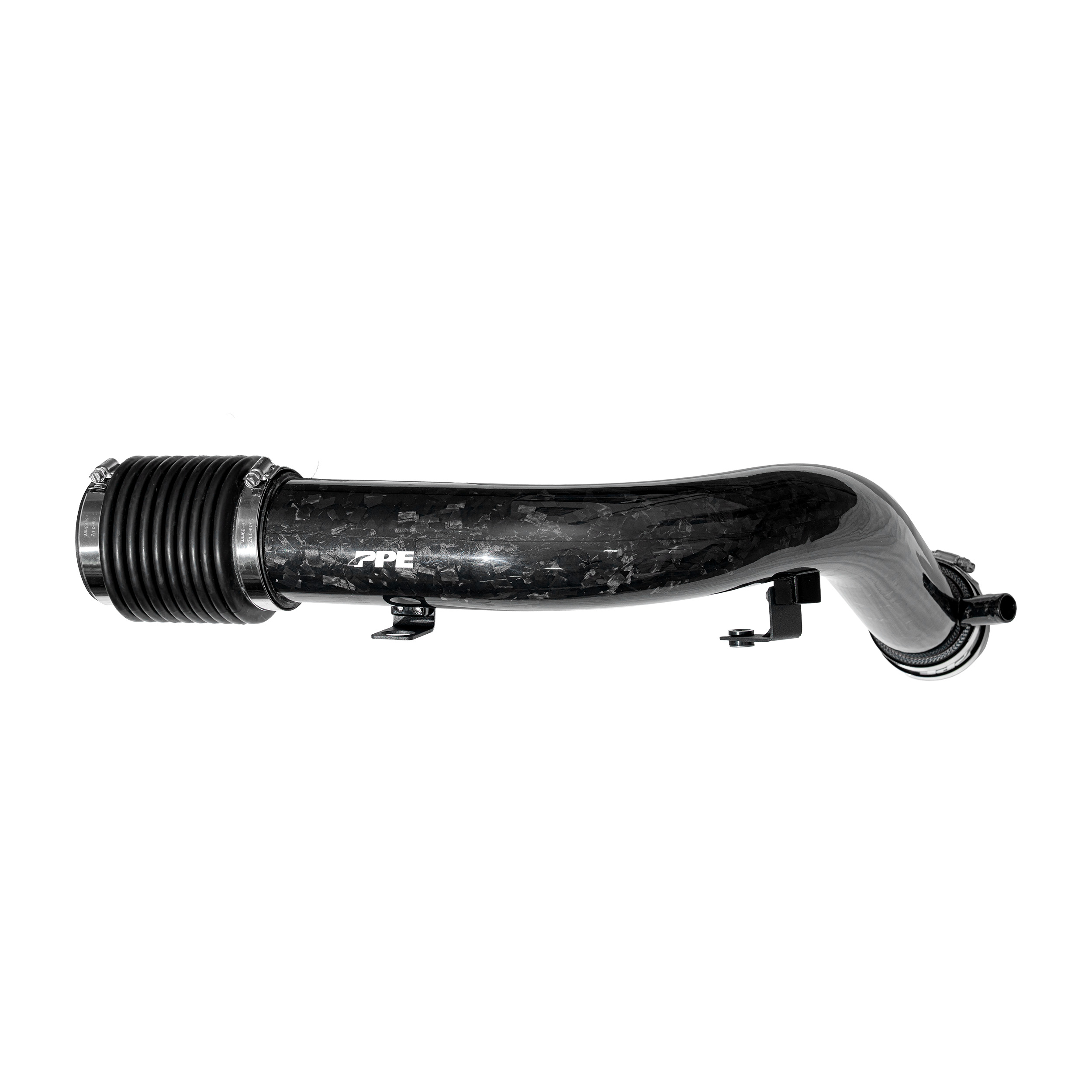 The factory plastic intake pipe features an undersized inner diameter and abrupt changes in cross-section, inducing turbulence that disrupts airflow. The stock turbo resonator also restricts airflow, delaying throttle response, decreasing power and torque, and suppressing turbo noise. The PPE Zilla intake tube features a smooth surface finish, with natural transitions that maximize airflow, resulting in sharper throttle response and an increase in power and torque. It also eliminates the factory turbo resonator for a more pronounced turbo whistle. Designed for a seamless fit, all installation hardware, couplers, and clamps are included for easy, hassle-free installation.